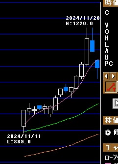 寄り1003円で寄ってS高値1063円で張り付いてしまった。